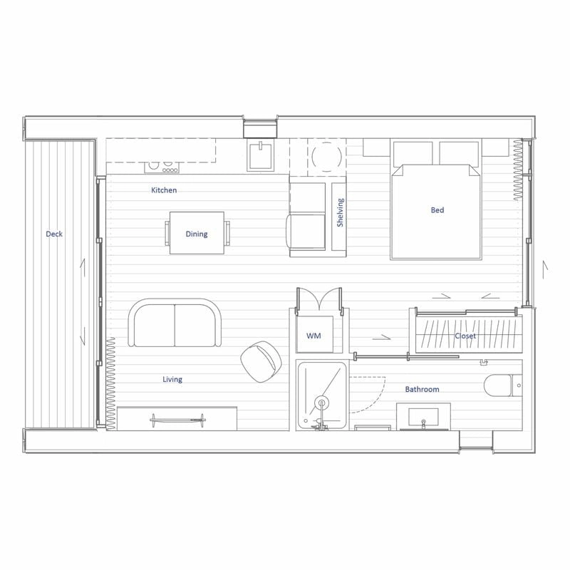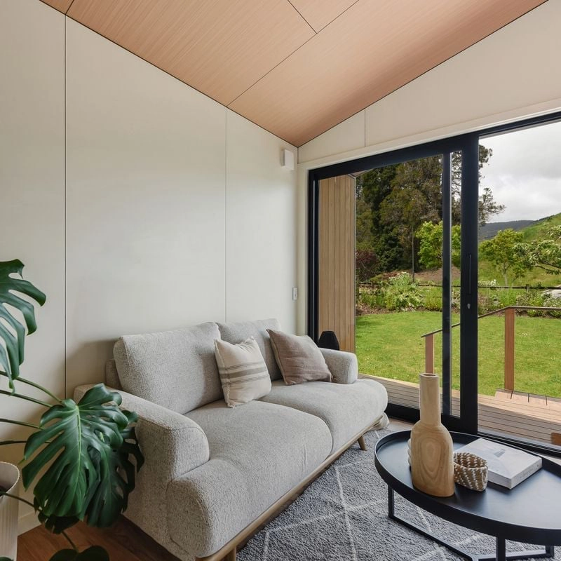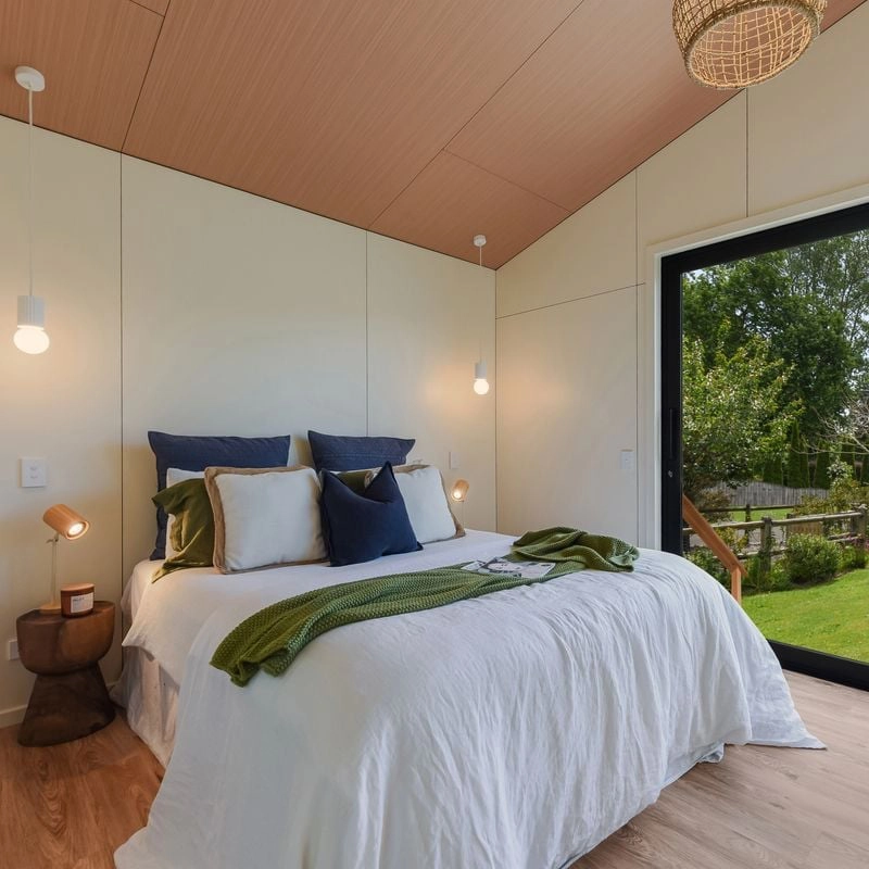 The Romney is where thoughtful design meets everyday comfort. Within its cleverly planned 34m² footprint, you’ll find light-filled living beneath soaring gable ceilings, a private bedroom retreat, and a spacious bathroom with Euro laundry. Built-in storage keeps everything organised, while large sliding doors open to a generous deck that blends indoor and outdoor living. Practical, energy-efficient, and effortlessly modern, the Romney makes compact living feel beautifully expansive.